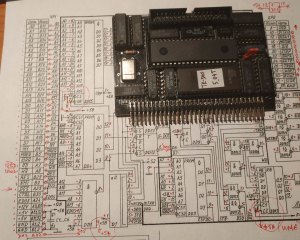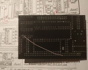 Пробовал менять процессоры, отключать AY-бутерброд и контроллер, грузился на кассету с чистой платы - ничего не помогает.И я так понял это из-за того что на DD36 не приходит полноценный сигнал IOWR, который ранее мы ополовинили подрезая дорожку с 20 ноги процессора на DD19?