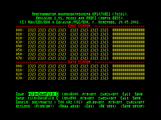 - Программа-пример из документации микроконтроллера: test.mic, я скармливал ее TESSA.EXE и сравнивал получившийся результат со своим