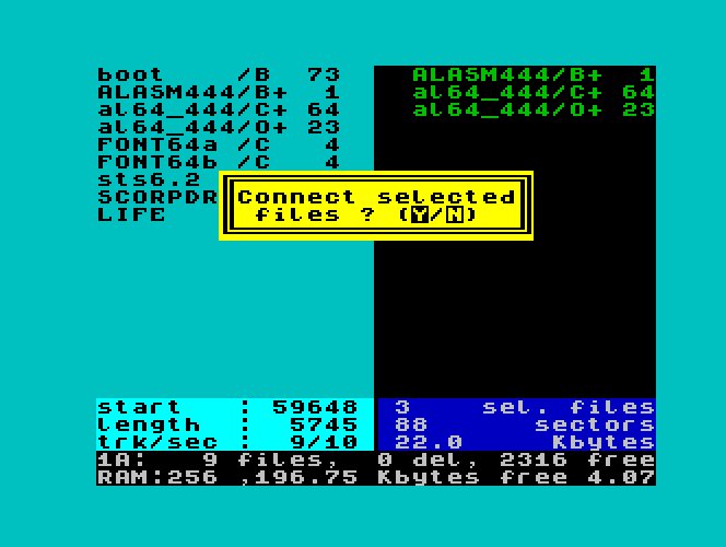 To join several files into one big file you can use Direct commander. Press S, select some files (there must be no space between files), press Z and confirm operation Y(es).