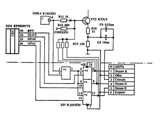 Выше мы выяснили, что Самоцвет обеспечит работу и с монохромным монитором, т.е. будет инверсия и мерцание. Схема Толкалина такого не обеспечит. конечно можно ч/б монитор прицепить к RGB выходам, как в свое время Спектрумы цепляли, но наверное лучше и удобнее обойтись без подобных подключений?
