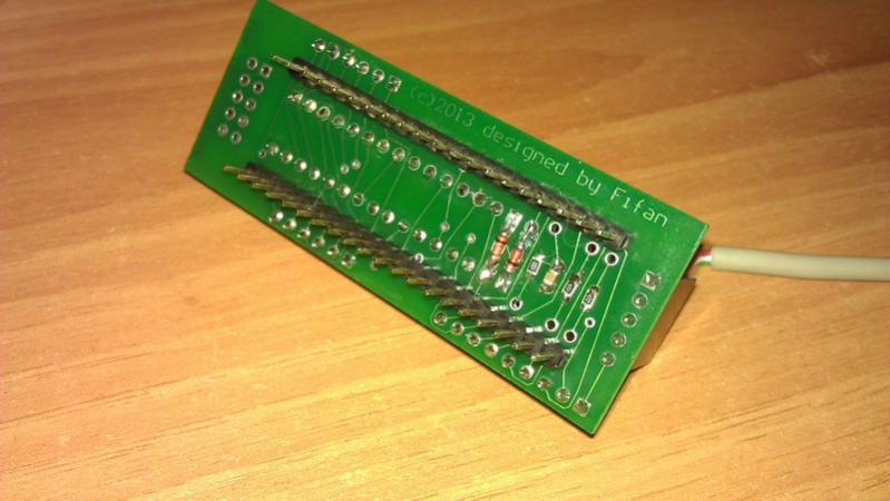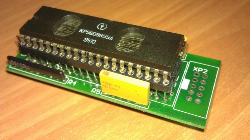 Не уточнил под каким Специалистом заработала? Почему спрашиваю. Спаял я ещё раз PS/2 адаптер на плате любезно предоставленной perestoronin'ом. Атмегу я сам не прошивал, отдал товарищу. И... данный бутерброд не заработал. Включаю, Светодиоды на PS/2 клаве моргнули. Курсор на компьютере как обычно моргает и всё. Не реагирует клава на нажатия. Через каждые несколько секунд писк в динамике. ВВ55 менял на другую, то же самое. Может со Специалистом_МХ2 адаптер не совместим? Жаль что самого автора, vinxru, на этом сайте редко встретишь. Ещё главное. Что обязательно для повторения адаптера, использовать панельку под ВВ55 именно как я когда-то указывал - с очень длинными штырьками. Запаял обычную панельку на обычные штырьки - результат плохой, по высоте проблема. Плата не даёт вставить разъём для подключения Flash-диска, да и свой разъём для 72-клавишной клавы мешает. Вот фотки неудачного бутерброда.