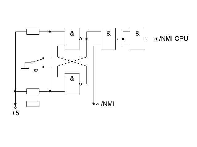 Немаскируемое прерывание производится по отрицательному перепаду на линии NMI. Его нельзя программно запретить. В момент прихода сигнала процессор сбрасывает бит разрешения прерываний, сохраняет содержимое программного счётчика на стеке и передаёт исполнение на фиксированный адрес 0066h.