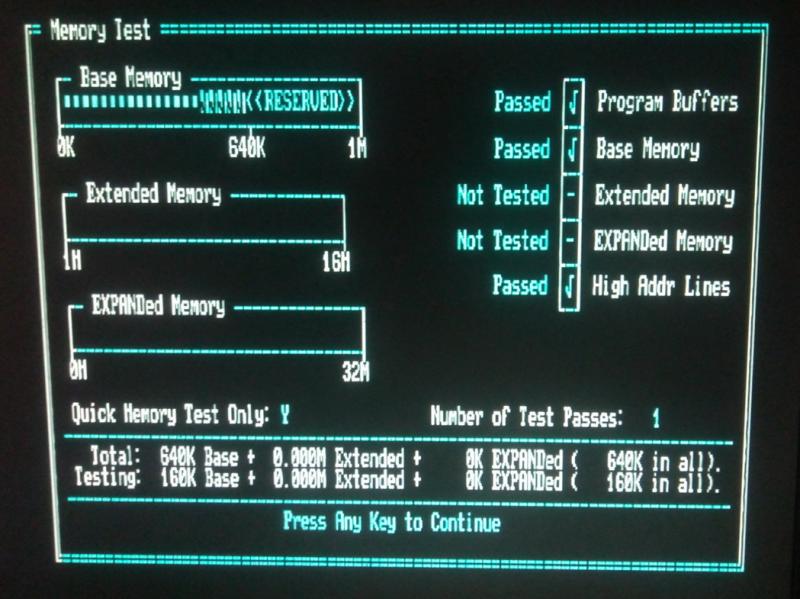 Прошел расширенный тест памяти с 480Кб (0x78000) до 736Кб (0xB7FFF)