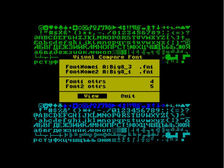 Visual Compare Font - overlay for ZAsm v3.05.- Шрифтов, особенно 6-ти битных, скажем так есть и не один десяток. То что среди них достаточное количество копий - само собой разумеется. Вот Visual Compare Code писался для разбора со шрифтами в том числе. Однако, попадаются случаи когда шрифты отличаются какими-то десятками байт, но не видно же.