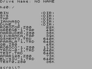 "Железного" Спектрума у меня нет, да и на моём Пентагоне такой железки не было. "Виртулаьный" у меня в эмуляторе Шалаева, еще иногда использую xpeccy, и для запуска всего и вся spectaculator, но .. пишу в Шалаеве, просто потому что это удобно. Но такого плагина к нему нет, да и нужна какая то информация по железке. Вообще давно имею глубокое заблуждение, на Спектруме жесткого диска нет, почему - да потому что нельзя набрать RANDOMIZE USR 15616 и набрав команду CAT или LIST увидеть этот самый каталог. Так что вопрос - как?!