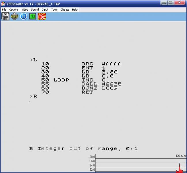 jerri, а не подскажите как заполнить точками весь экран? На бейсике всё понятно, а на ассемблере, в книжке написано, что за все циклы отвечает регистр В. На языках высокого уровня я делал с помощью двумерного массива, а здесь?