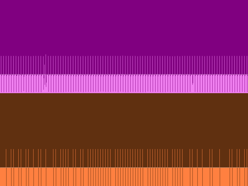 У меня сначала более-менее ровно идёт, с мелкими выбоинами, потом через некоторое время дикая расчёска, потом опять мелкое, потом опять выскакивают здоровые пики.