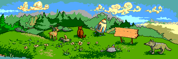 Уменьшенные копии скриншотов - естественно, каждый из 8 сконверчен по-своему и исправлялся вручную, иначе на них невозможно смотреть. При этом каждый из них опять-таки вручную сводился в 14-цветную палитру с возрастанием яркости.