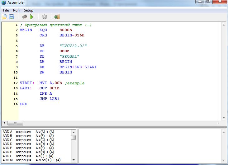 Редактор ассемблера, с возможностью запуска в эмуляторе.