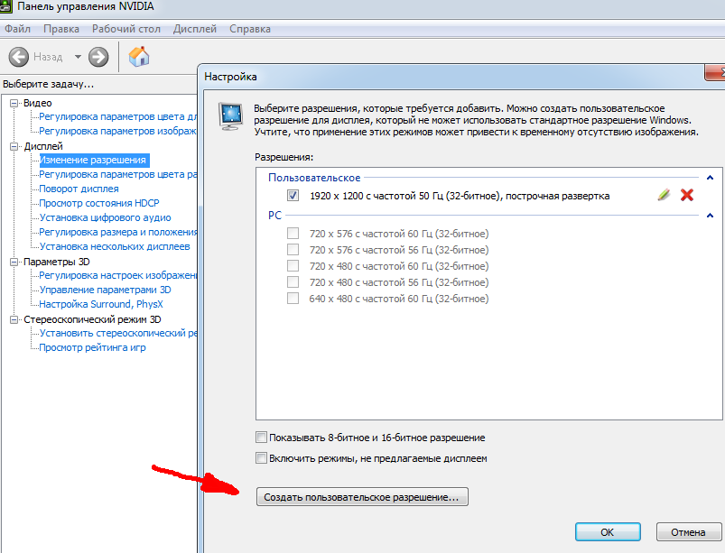 GTX1060, меняется через стандартную панель Нвидии. Тыкаем Изменение разрешения, внизу кнопка Настройки. Далее Создать пользовательское