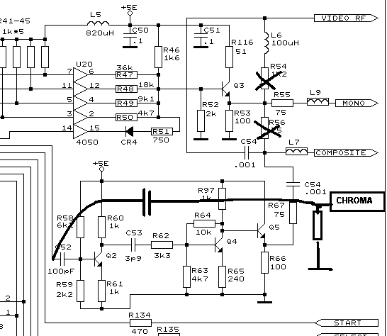 Понял, что все сводится к удалению R54 и R56 , ввода цепочки (CHROMA) из электролита и резистора 75Ом . Композит, как и писал выше , на не нужен.