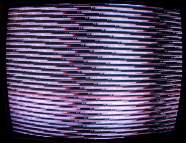 Одарили меня данным девайсом. При подключении к телеку через SCART получаю следующее: http://rusfolder.com/39488244 (это видео, а фото во вложении). резисторов не ставил, 16-й пин висит в воздухе (при его подключении к батарейке 1,5в становится синим все не-черное, а при отпайке синхры изображения нет). При композитном подключении все то же самое, только ЧБ.