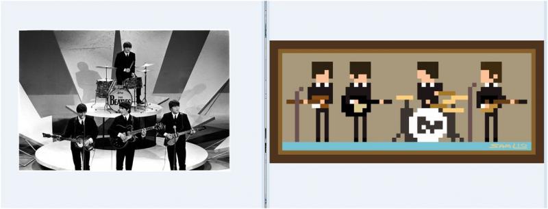 Владимир, там в первой строчке мелькает цифра 78, это размер экрана в символах? Картинка Битлз шириной 64 столбца вместе с рамкой. Если да! тогда проще, не нужно применять псевдо графику. Целиковыми прямоугольниками картинку попробовать составить. Хотя музыканты могут стать вытянутыми..