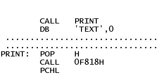 Кстати хочу поделиться. В 89 дизассемблировал ЗАГИБОН и мне понравилось как там реализован вывод текста на экран. Сделано нестандартно и в ассемблерном тексте более читабельно.