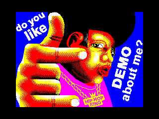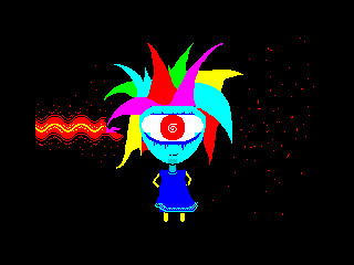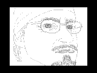Судя по этому рисунку человек впервые пробует рисовать на спектруме и ещё чувствуется у человека очень дружеское отношение. Поэтому хочу поблагодарить автора за участие и пожелать ему продолжать рисование, потому что такое впечатляющее сходство такими убогими средствами говорит о всего лишь отсутствии навыка рисования средствами спектрума при том что у автора явно есть способности. Удачи, автор!