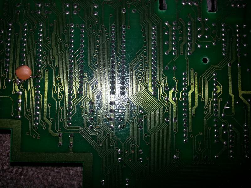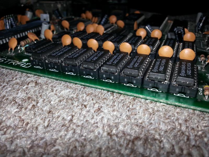 Программатор мой так пока и не приехал, но по скольку на этой неделе было много свободного времени - тупо решил отпаять все РАМки, и заменить, в надежде, что найду ту, которая битая. По скольку фон был чёрным - начал с ИЦ17 - не помогло, дёрнул ИЦ32 - опять нифига. Психанул - и снял весь верхний ряд - без изменений.. Я уже трухнул, и начал коситься на улу, под рукой замены не было, по этому уже решил - чего уж там, перепаяю и нижний, хуже не будет...