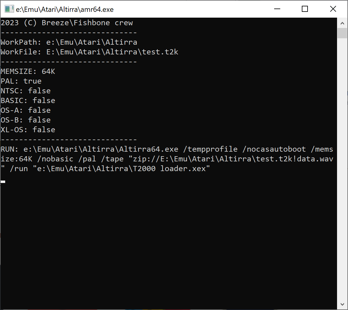 Для запуска кассет «Turbo 2000» также необходимо, чтобы файл загрузчика «T2000 loader.xex» находился рядом с amr64.exe.