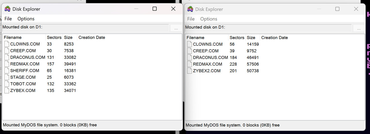Файлов на дискете стало больше, размер меньше (видимо перепакованы).