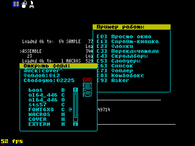 Мною тоже выпускались программы с собственным оконным интерфейсом. Ниже представлены скриншоты последних из них: Grand's Screen Viewer, где использован "синклеровский" шрифт, и Grand's Boot - со шрифтом 4x8. Сами программы можно получить отсюда: http://grands.land.ru/creative.htm