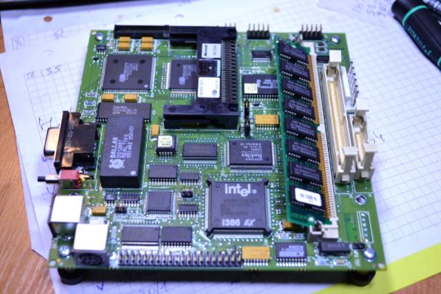 Собственно, мысль такая. Все 486 работают на 33МГц. Если применить современную быструю память (даже желательно статику - например 4 по 512КБ получаем уже 2МБ), то кэш не нужен совсем! Это по сравнению со старыми 72 пина EDO, которые 60/70нс (или 16МГц) всего. Т.е., теоретически получится неплохая DOS машинка, а если удастся набрать более 8Мбайт то и Win машинка. С нативной ISA например.