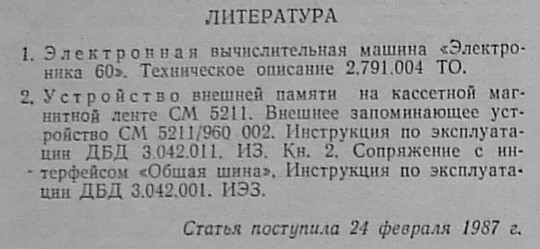 Разработано программное обеспечение, эмулирующее систему команд ВМ "Электроника-60" с выходом на ши-ну МПИ через интерфейсную плату, что позволяет полностью имитировать указанные ЭВМ как в программ-ном, так и в режиме управления внешними устройствами.
