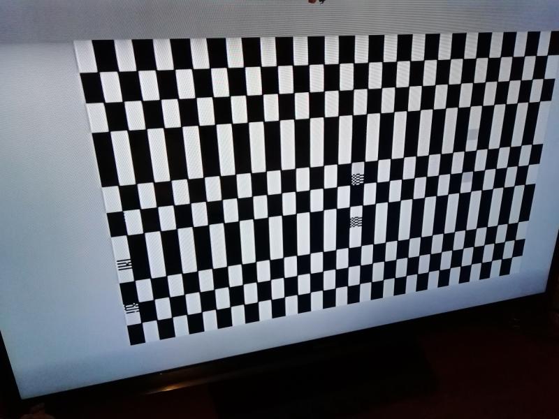 Шахматка без CPU (отключил, т.к. было подозрение на нестабильную работу) с небольшими артефактами (проявляются не всегда). Шахматка не стабильна - висит 1 сек, потом срывается, появляется через пару секунд. Тайминги условны.