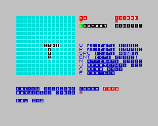 Игровое поле состоит из 15х15 квадратов, на которые участники игры (Вы и Спекки) выкладывают буквы, составляя тем самым слова. В начале игры каждый игрок получает 7 случайных фишек с буквами. На середину игрового поля первый игрок выкладывает первое слово, составленное из своих фишек. Затем следующий игрок из своих фишек может добавить одно слово на пересечение имеющихся слов. При этом не допускается, чтобы на поле образовывалось больше одного слова за ход (компьютер не допускает такой расстановки фишек).