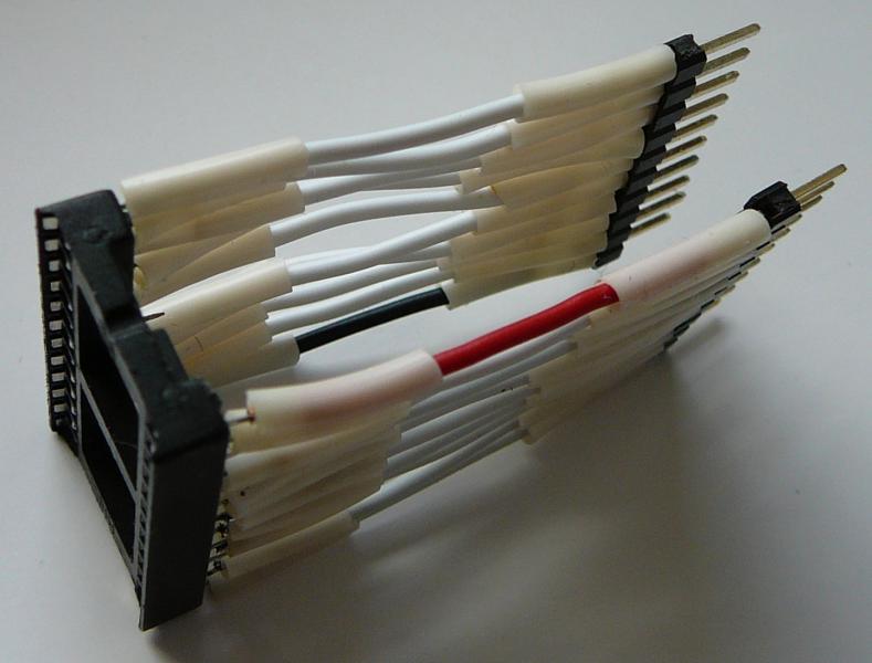 Программатор Стерх-007 про 1556ХЛ8 думает, что она в узком DIP-20. Поэтому, чтобы зашить в нем 1556ХЛ8 в широком DIP-24, я делал переходник (см. фото).