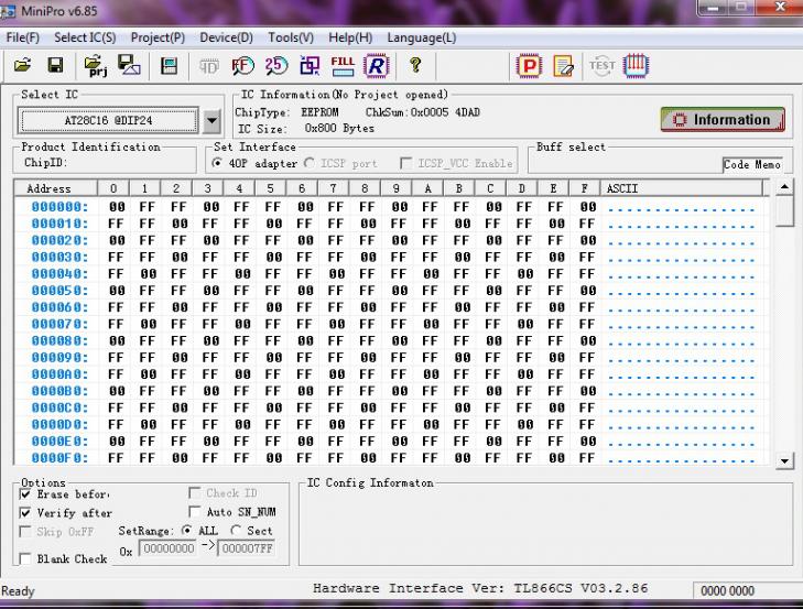 Вчера с али пришли пять микрух AT28C16, на радостях от того что получил наконец посылку сразу по приходу домой закрыл заказ. Сегодня стал проверять программатором (TL866) и оказалось что программируются они вот так, 4 штуки: