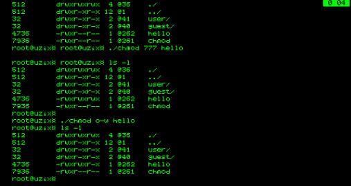 Таки была досадная мелкая ошибка в ядре (UZIX.COM) в модуле SC1.C в процедуре chany в ветке ORI_UZIX где делаются межстраничные пересылки (почему и не проявлялось в UCP - там всё в общем CPM приложении). Пофиксил, закоммитил на GITHUB. Заодно скомпилировал (по своей же инструкции страницей ранее) chmod из исходников - он отличается от старого бинаря (который взят с MSX без перекомпиляции как и большинство прочих) тем что умеет ставить права не только восьмирично, но и символьными параметрами (вот эти вот все o+x, g-w и т.п.). Поправленное ядро и новый chmod во вложении. Кому не лень - проверьте на реале пожалуйста.