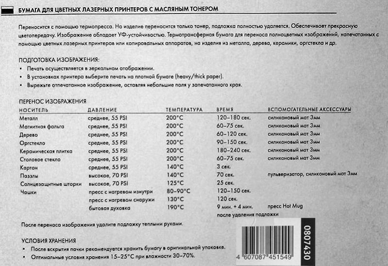 тип бумажки: Laser Transfer Paper (Термотрансферная бумага для цветных принтеров)