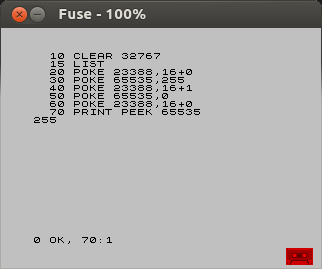 Симулятор в 32 килобайта укладывается. Сначала попробую запустить на 48к RAM с виртуальными 16к RAM, то есть с адресами 0000...7FFF будет работа напрямую, а в адресах 8000...FFFF сам симулятор и стек, запись в симуляторе заблокирована. Потом доделаю для 128к и запущу симуляцию 48к, в которой запущу тесты.