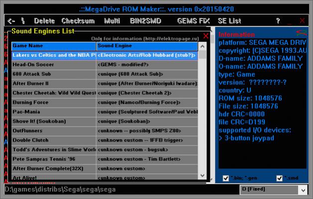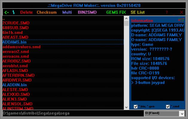 • чтение заголовков *.BIN, *.SMD файлов и отображение инфы из них о роме.