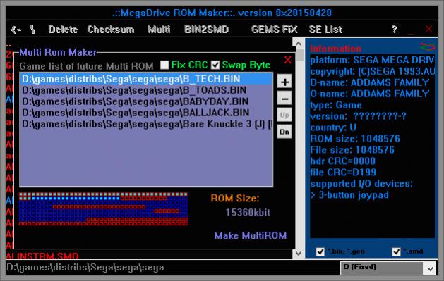 • создание многоигровых ромов для прошивки в ПЗУ картриджей, возможен автобайтсвоп при создании и исправление контрольной суммы;