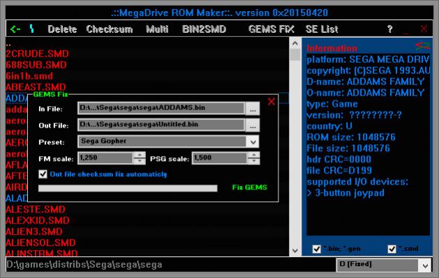 • исправление таблицы звукового движка GEMS, применяется для Sega Gopher, код исправления написан r57shell;