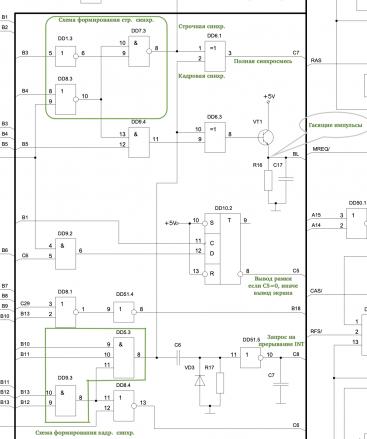 Схема Пентагона 128 очень обалденная у mick. Туда начал добавлять, подписи, какая нога за что отвечает и выделять функциональные блоки, чтобы не вспоминать что где по началу. Вот небольшой кусочек: