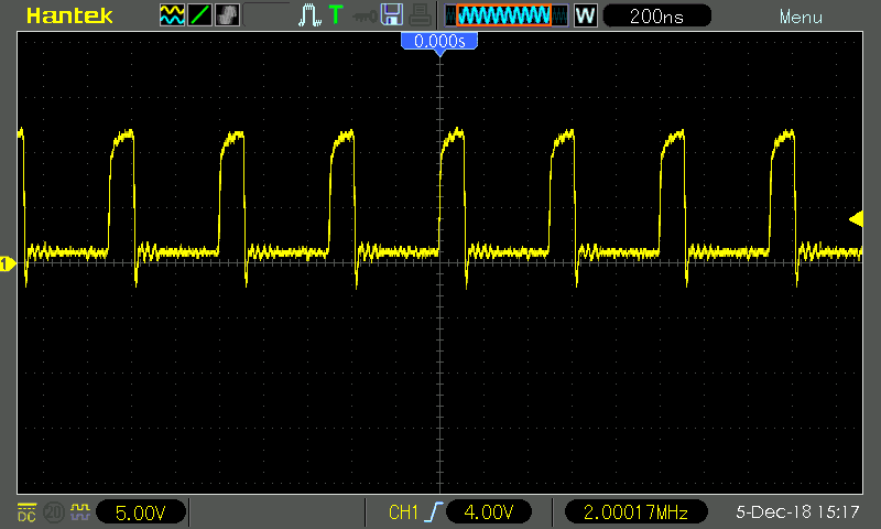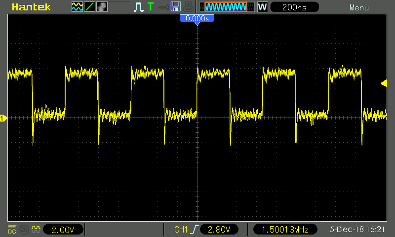 Довольно странно. Скажите, F1 действительно должна быть 9 МГц? Судя по осциллограммам, у меня она 2 МГц. Также и F3, она не 1 МГц, а 1,5 МГц.