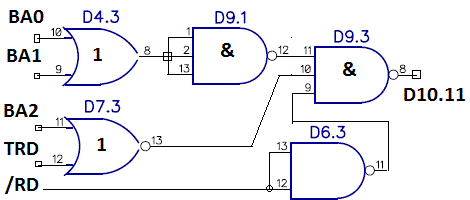 Понимаю. Дело во времянках (в моем варианте получится работа по срезу сигнала IORQ, т.е. как оно и есть сейчас, как я понимаю). Схема 5ИЛИ на имеющихся свободных элементах (потому что не охота ставить дополнительные, и не охота на диодах) получится такой (см. ниже)?