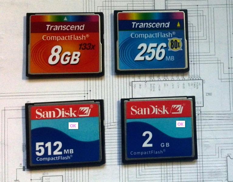 Я пробовал только с СF картами. Проверил имеющиеся в наличии карты. Из 5 CF карт 2-е ведут себя странно. На карте 256Мб при чтении идет задвоение, на карте 8Гб вообще всегда читаются только первые два байта из MBR. С 512Мб и 2Гб картами все ОК. И что интересно, все эти карты отлично работают с IDE интерфейсом на ВВ55 и на РС. Никаких глюков не наблюдается.
