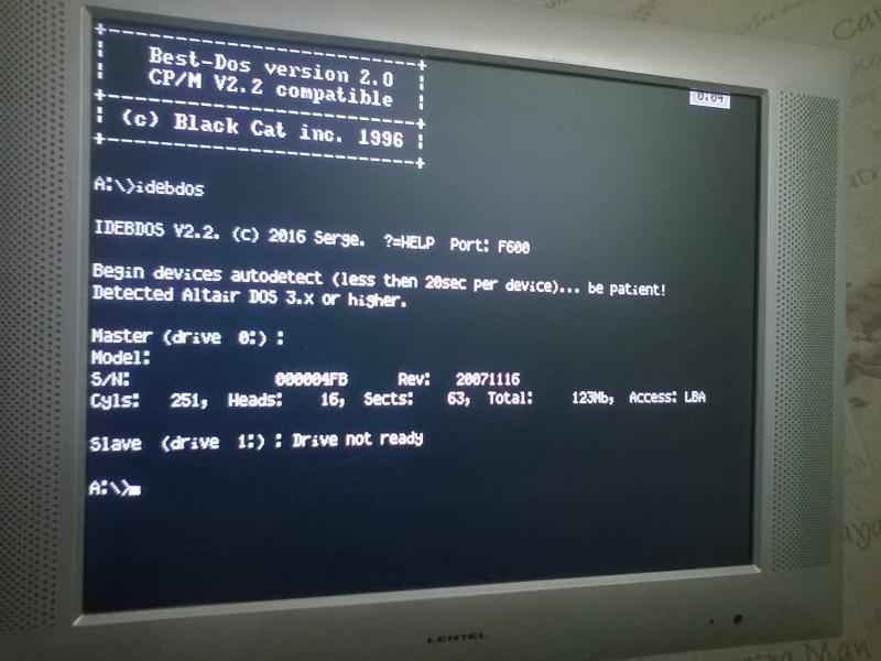 1.7В могло бы быть на "висящем" входе лн1 (когда ВВ55 после сброса стоит в состоянии "все порты на ввод"). Соответственно вопрос: в ВВ55 порта F600 запись нормально проходит? Что-нибудь кроме IDE на этом порту работает?