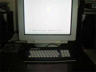 • «Мастер» по описанию Costa. В корпусе аналогичном фотографии, без контроллера дисковода, но с местом на плате под БМК для него. На плате обычная Т34ВГ1, экран сжат (значит, кварц 8МГц). Все совпадает с фото корпуса, кроме сжатого экрана (см. фото). Но возможно в мониторе (NEC) на фотографии экран растянут по горизонтали (для исправления геометрии картинки). В остальном совпадает с фото компьютера.