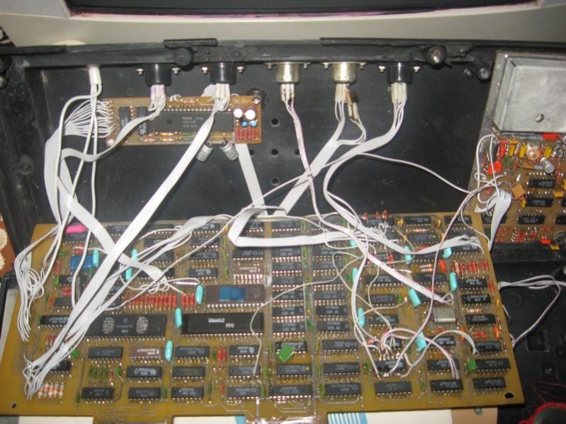 Корпуса разных компьютеров немного различаются надписями. У этого на крышке ничего нет, у других надпись "OMEGA" аршинными буквами, в трех вариантах начертания. Кстати, это самый целый экземпляр. Остальые потерты, поцарапаны, почти у всех не хватат наклеек на клавишах, по крайней мере один сожжен перенапряжением. На всех компьютерах выкусаны КМки. На корпусах никаих опознавательных знаков нет.
