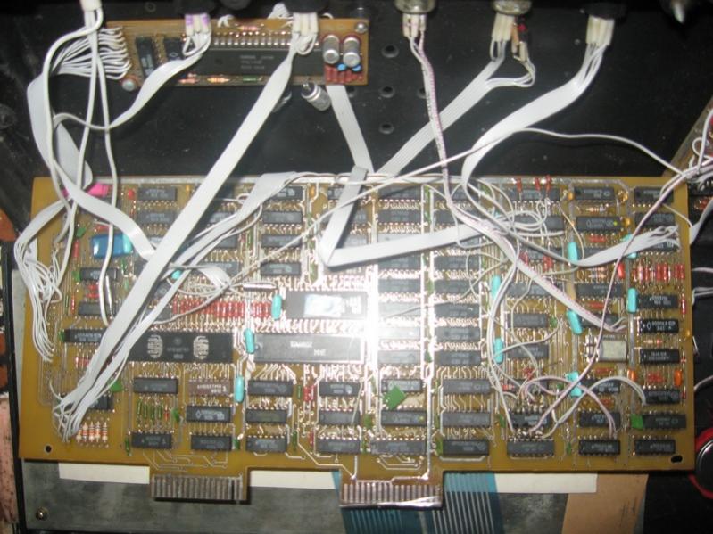 На плате надпись "CPU OMEGA PC901". Процессор - ГДРовский UA880D, одна линейка памяти, ПЗУ - две штуки КС573РФ4А. Никаких ПЛМок на плате нет. Магнитофонный вход сделан на 140УД708. Есть смеситель для ч/б сигнала. Питание - стабилизированое 5В, но на плате присутствует место для выпрямителя и КРЕНки. Интересна "частично расширенная" клавиатура компьютера, на ней надпись "KEYB OMEGA PC901".