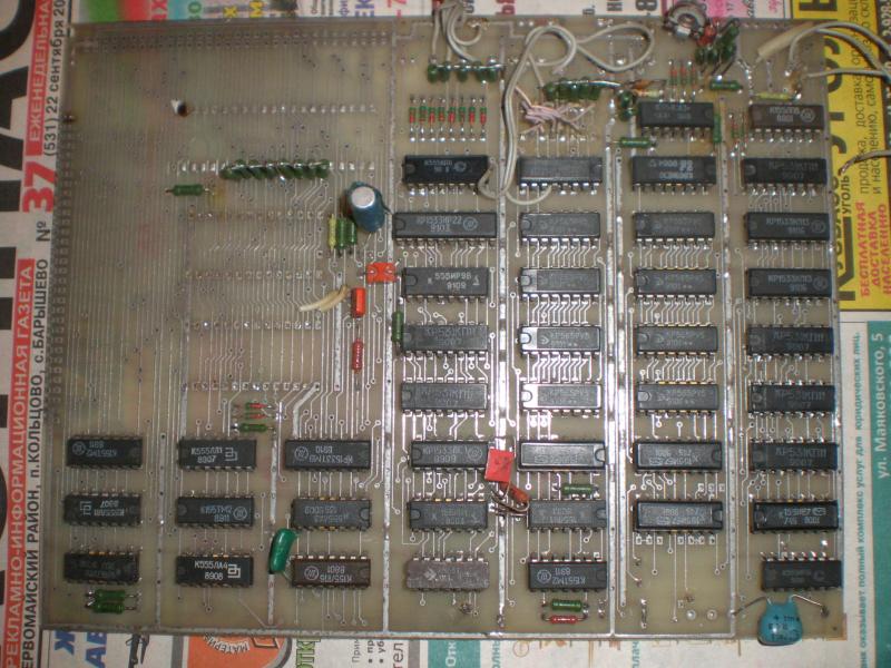 Вторая по всей видимости какой-то из последних вариантов Новосибирского ПЛМ. Как сказал человек мне их отдавший на ней демонтированы 2 корпуса статической памяти - 537ру10 и уже как я думаю часы реального времени (судя по часовому кварцу). Ну, а рядом с ними в пластмассовом квадратном корпусе находятся 3 аккумулятора д-0,25.