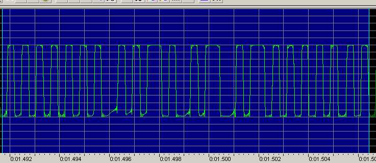 Но я не вижу этой последовательности в начале реального записанного сигнала. Я там вообще длинных горизонтальных "полок" (между битами D3 и D2) внизу диаграммы не вижу, хотя, они должны быть в сигнале..
