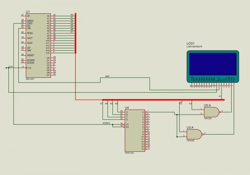 Только вот сигнал Е на дисплей надо подумать где взять. На запись там просто по спаду, а на чтение надо два раза подергать. И еще не разобрался пока - дергать Е надо когда уже все сигналы на других линиях установлены. Если Е подцепить к 0 выходу дешифратора то когда он будет выбран - еще нету CS1|CS2 - NAND`ы сработают не сразу.