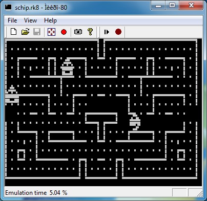 У Микро-80 экран 64х32, как раз для CHIP-8. Новая версия с некоторыми расширенными функциями SCHIP, например режим экрана высокого разрешения 128х64(кроме скроллинга). Работает и на ЮТ-88, но нижние 4 строчки соответственно не видно.