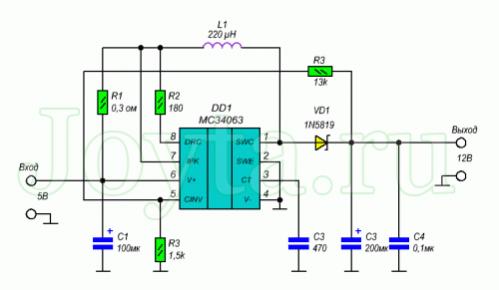 Дык схема то стандартная из даташита на микросхему. ну для тех кому лень искать - пожалуйста. Но диоды развязывающие питания -надо оставить, а вдруг у вас что то случится с преобразователем. Хотя бы на время наладки. Так как все идет от 5 вольт -там достаточно одного диода. с 5 на 12 , плюсом (анодом на 5 вольт ) минусом ( катодом ) на 12.