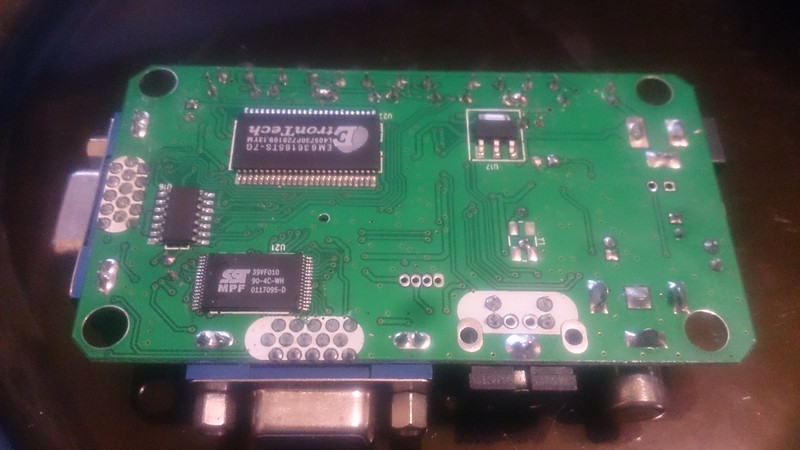 В описании всё очень даже прикольно: 1 вход композита, 1 вход S-Video и байпас вход VGA. Широкая поддержка разрешений. Я уже раскатал губу, что подключу на композит Сегу, на S-Video - Коммодор 64, а байпасом ZX-Evo на свой компактный 9'' vga монитор. Но, гладко было на бумаге. В общем вся суть в том, что этот девайс в упор не понимает цветовое кодирование сигнала ни у Сеги, ни у Денди, ни у Коммодора. Вместо цветной картинки, черно-белая с легким цветным муаром. Коммодор пробовал подключать и по композиту, и по S-Video.