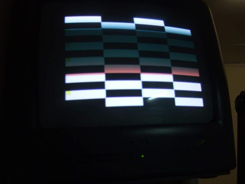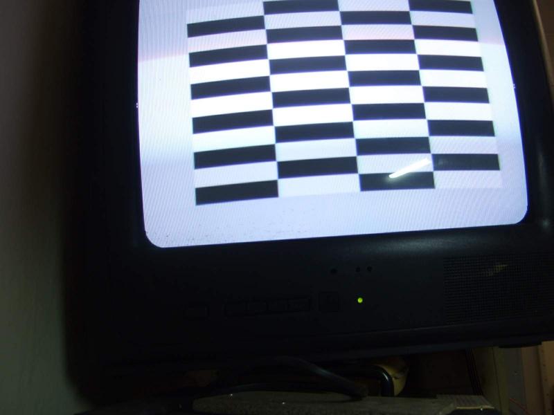 Проверил DD63, ну да, логично - дохлая. Завтра куплю замену, а пока что одел поверху 74HC00, сигнал появился, на экране шахматная доска!)) Только она по моему какая то странная, растянутая. Гдето видел картину как она должна выглядеть, теперь когда надо немогу найти. Тем не менее, она есть, бордюр серый. Включая много раз, подадался и черный бордюр, а так в основном серый. Вставил процессор, матраса нету, только шахматка. Там кажется конденсатора на reset нету, может проц нестартует. Иногда при включении могут и высветится цветные 'спектрумовские' кубики/артефакты.
